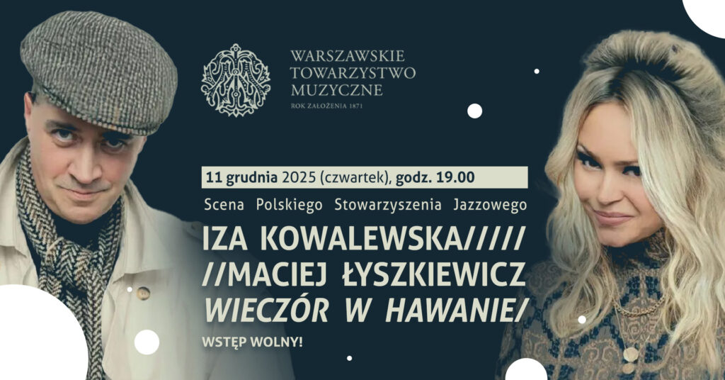 Izę Kowalewską zapewne znacie z takich przebojów jak „Nocna Zmiana Kobiet”, „Komedia” czy „Winobranie”. Obok niej — Maciej Łyszkiewicz, kompozytor, pianista, lider legendarnego zespołu No Limits! – ten wieczór zapowiada się jak muzyczna podróż przez najgorętsze zakątki południowej półkuli. W programie znalazło się kolorowe, pulsujące rytmami menu: od ognistej rumby, przez pełne napięcia tango, aż po aksamitne, kołyszące bossa novy. Artyści zabiorą publiczność od nocnych ulic Hawany, przez intymny klimat Buenos Aires, aż po roztańczone wybrzeża Rio de Janeiro.