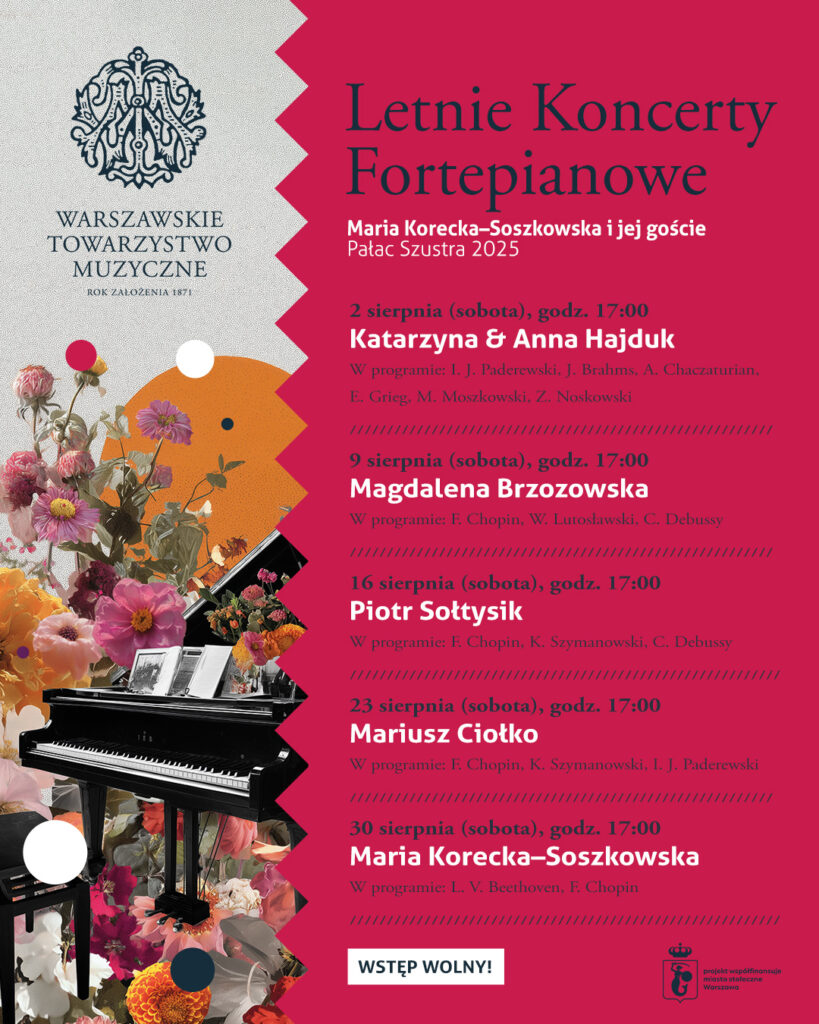 W Sali Koncertowej w Pałacu Szustra w wakacyjne soboty lipca i sierpnia o godz. 17.00 odbywają się Letnie Koncerty Fortepianowe.