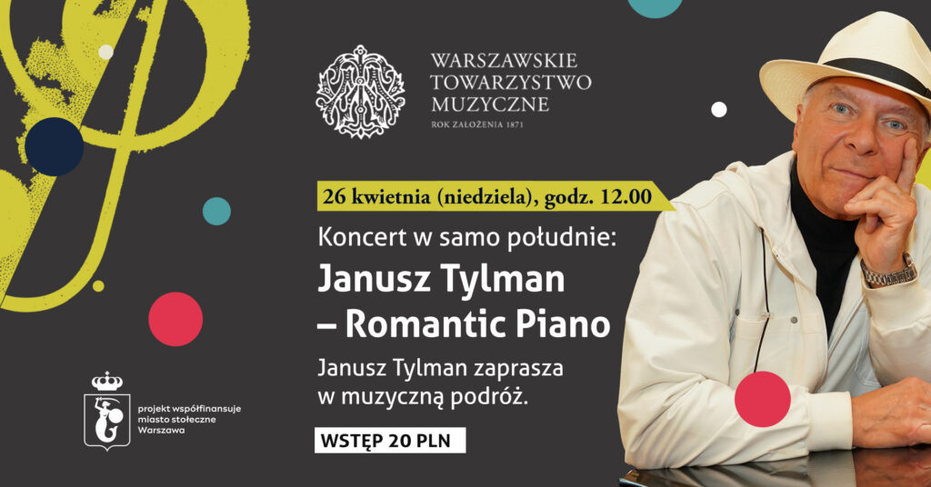 Warszawskie Towarzystwo Muzyczne zaprasza na koncert fortepianowy Janusza Tylmana – artysty o wyrazistym, osobistym języku muzycznym.